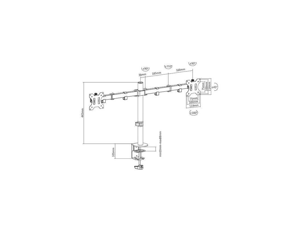 An economical solution. Full motion structure allows maximum flexibility – extend, tilt and swivel your monitor up to 90° left and right for easy viewing. Ball-joint structure allows smooth, effortless motion in any direction, making it easy to reduce glare and find the perfect viewing angle.