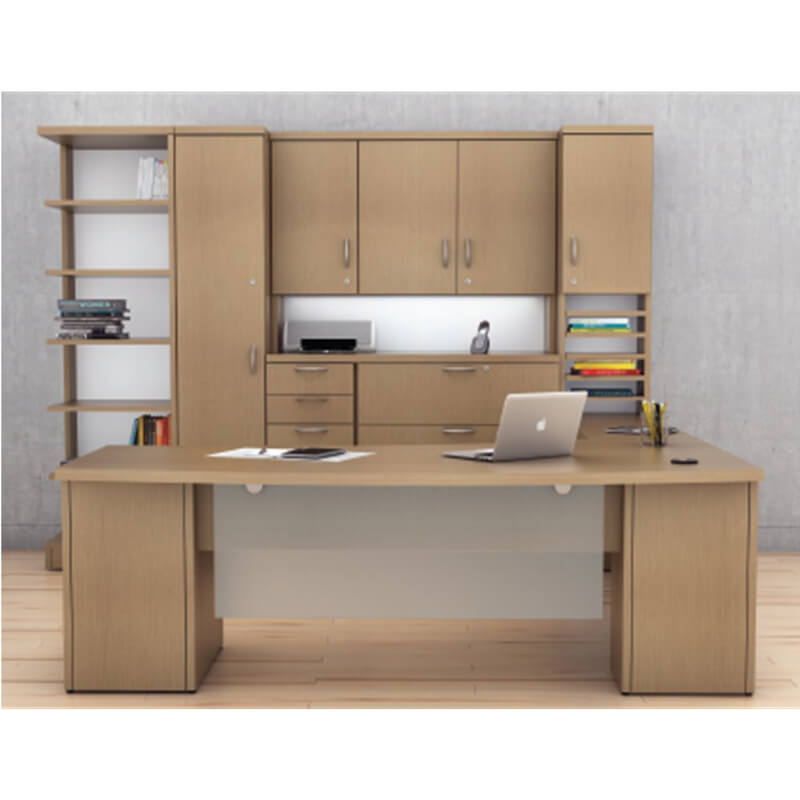 This custom executive desk is a special order item. This unit can be ordered with modifications to size, storage, finishes.